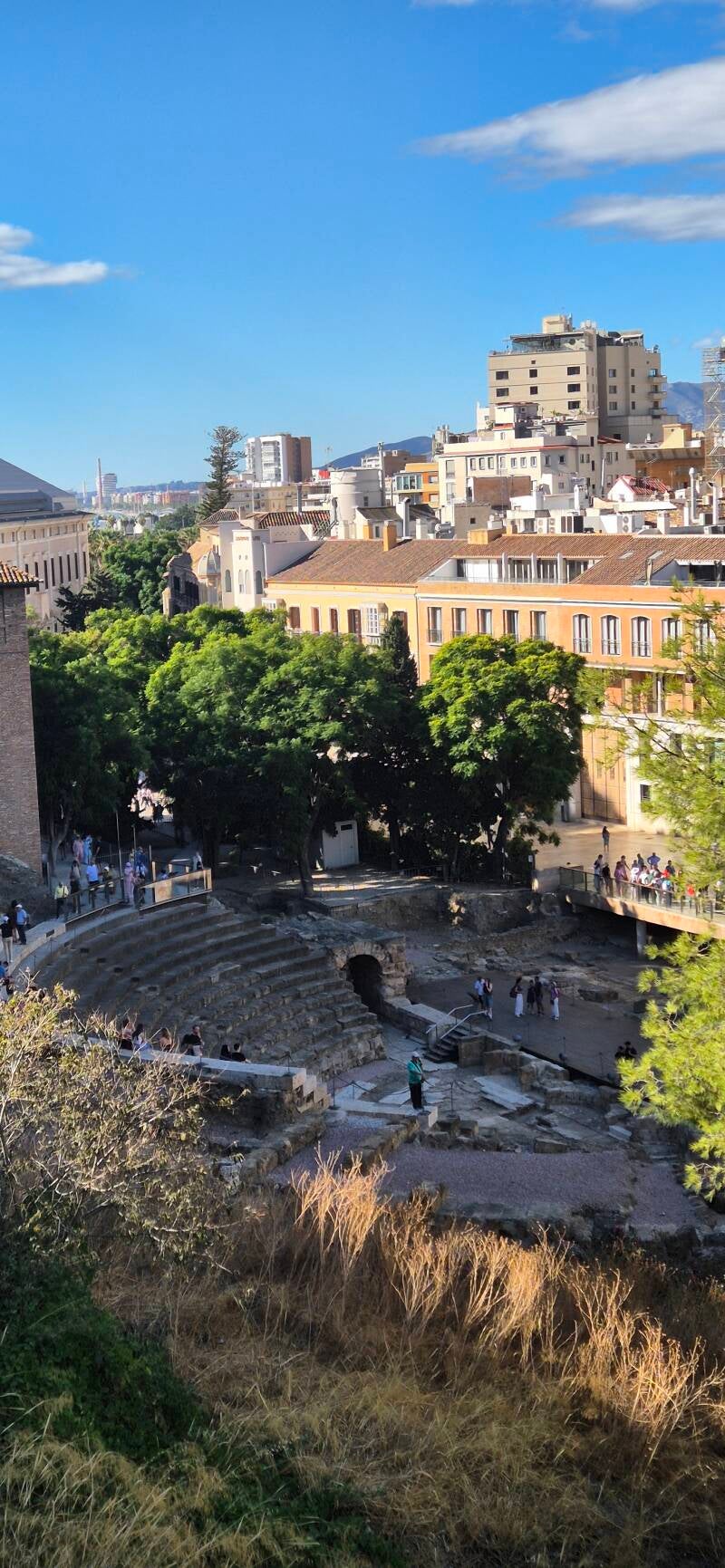 Le château de Gibralfaro, perché plus haut sur la colline, propose un panorama encore plus vaste. Depuis ses remparts, on découvre une vue à 360 degrés comprenant la ville entière, les montagnes environnantes et l'horizon maritime. Ce site, datant du XIVe siècle, servait autrefois à protéger l'Alcazaba et abritait des garnisons militaires. Il est relié à l'Alcazaba par un couloir en haut des murailles.