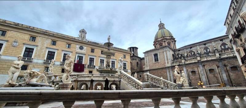 Réalisée au XVIᵉ siècle, elle est surnommée la Fontana della Vergogna (fontaine de la honte) en raison de ses nombreuses statues nues choquant les habitants très pieux du Palerme du XVIᵉ siècle. Certains y voyaient également une allusion à la corruption et à la décadence morale des élites de la ville.