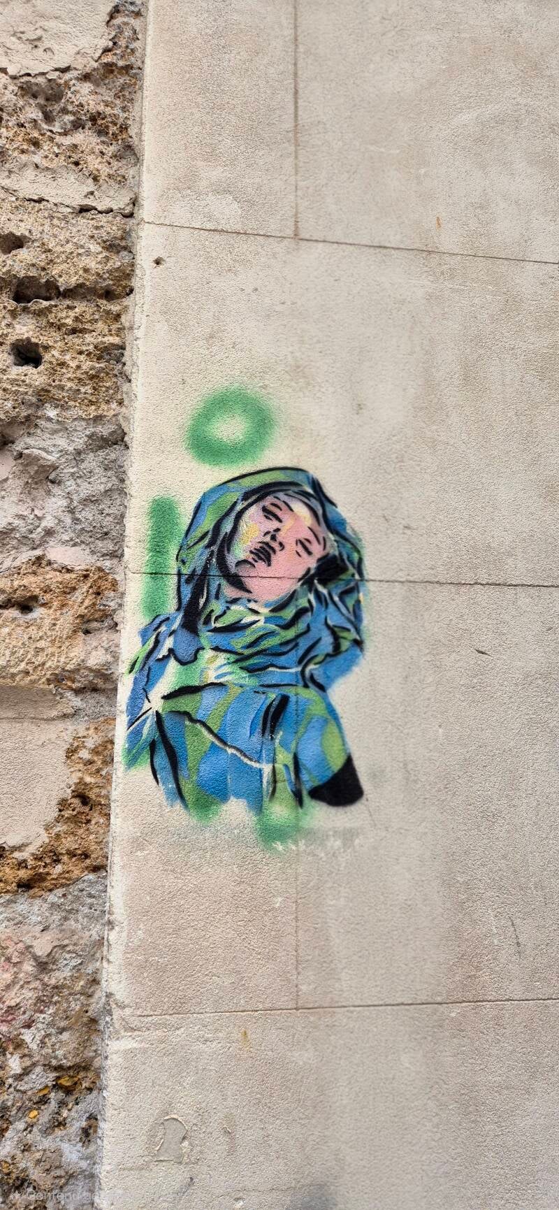 Œuvre murale monumentale « Viva Santa Rosalia » en hommage à la Sainte patronne de la ville réalisée par Igor Scalisi Palminteri au cœur du quartier Albergheria, dans le Vicolo dei Benedettini , rue Ballarò.