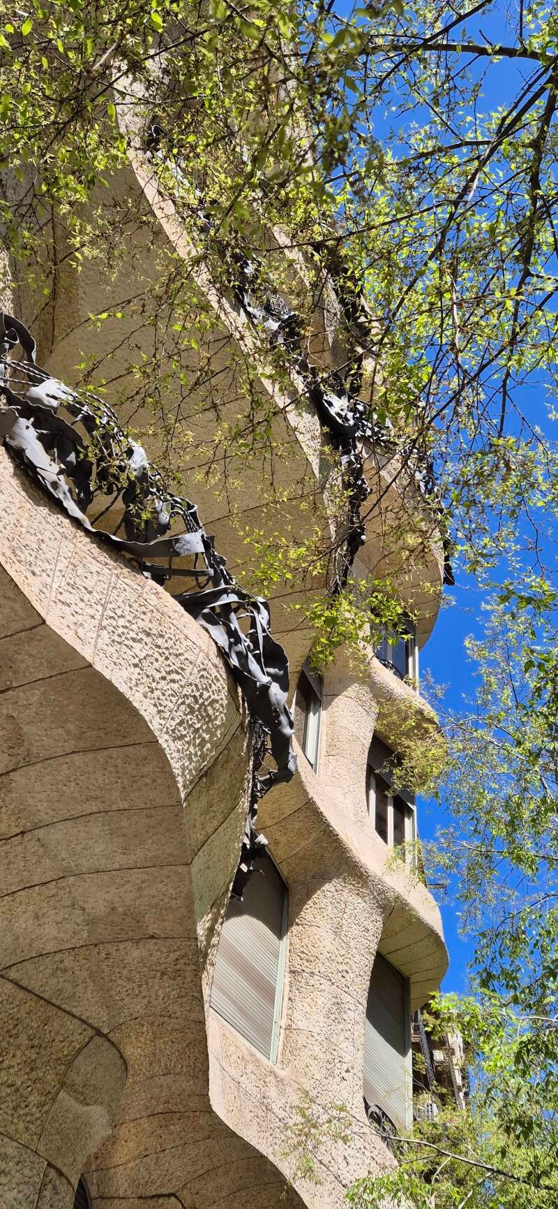 Parmi les plus connues, la Casa Batlló présente une façade ondulante recouverte de céramiques colorées. Les ouvertures sont irrégulières et les balcons évoquent des formes organiques.